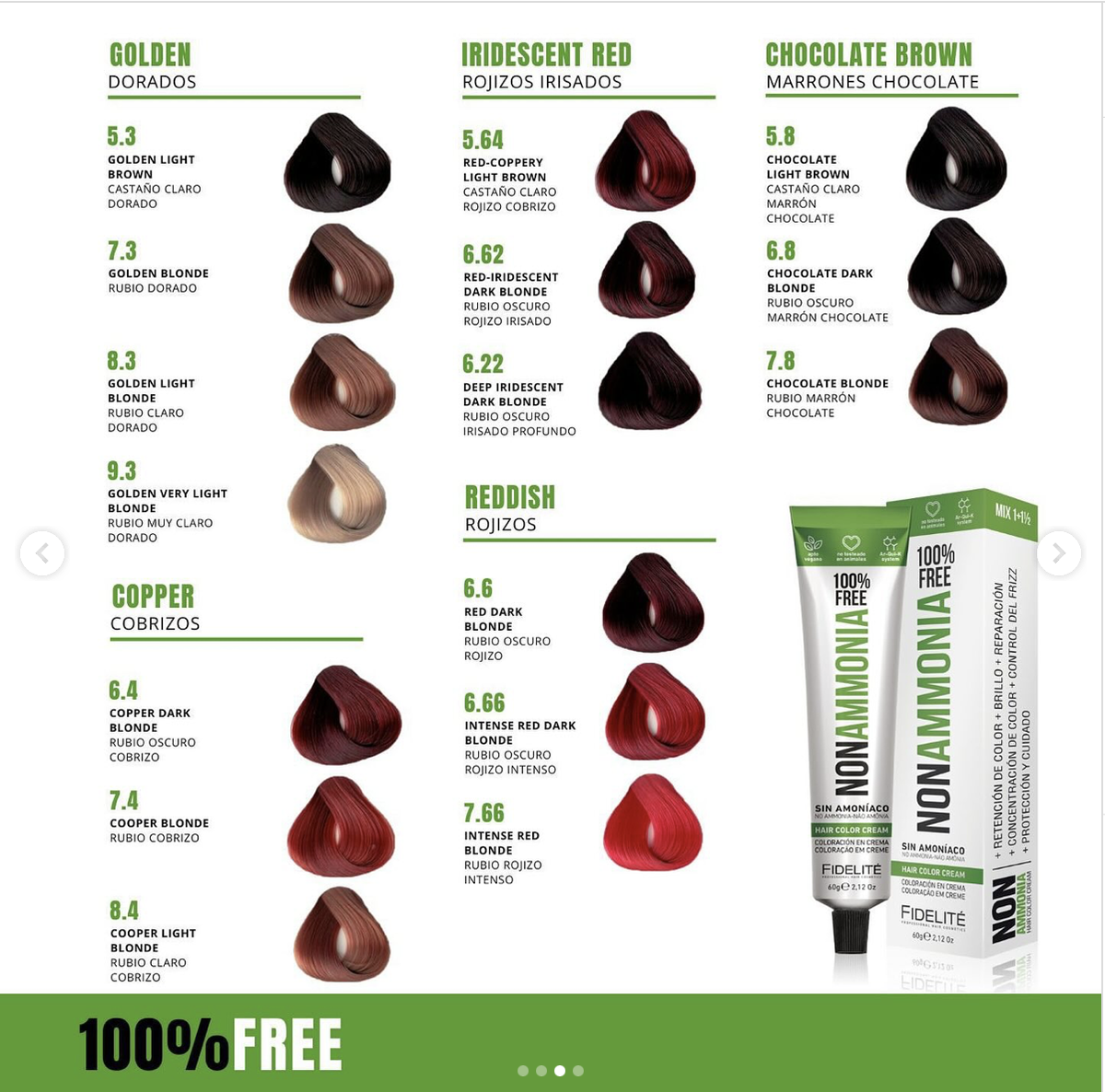 - El revelador utilizado. Por eso esta tintura debe utilizarse con el exclusivo REVELADOR FIDELITE NON AMMONIA, EN CREMA PARA TINTURA SIN AMONIACO.