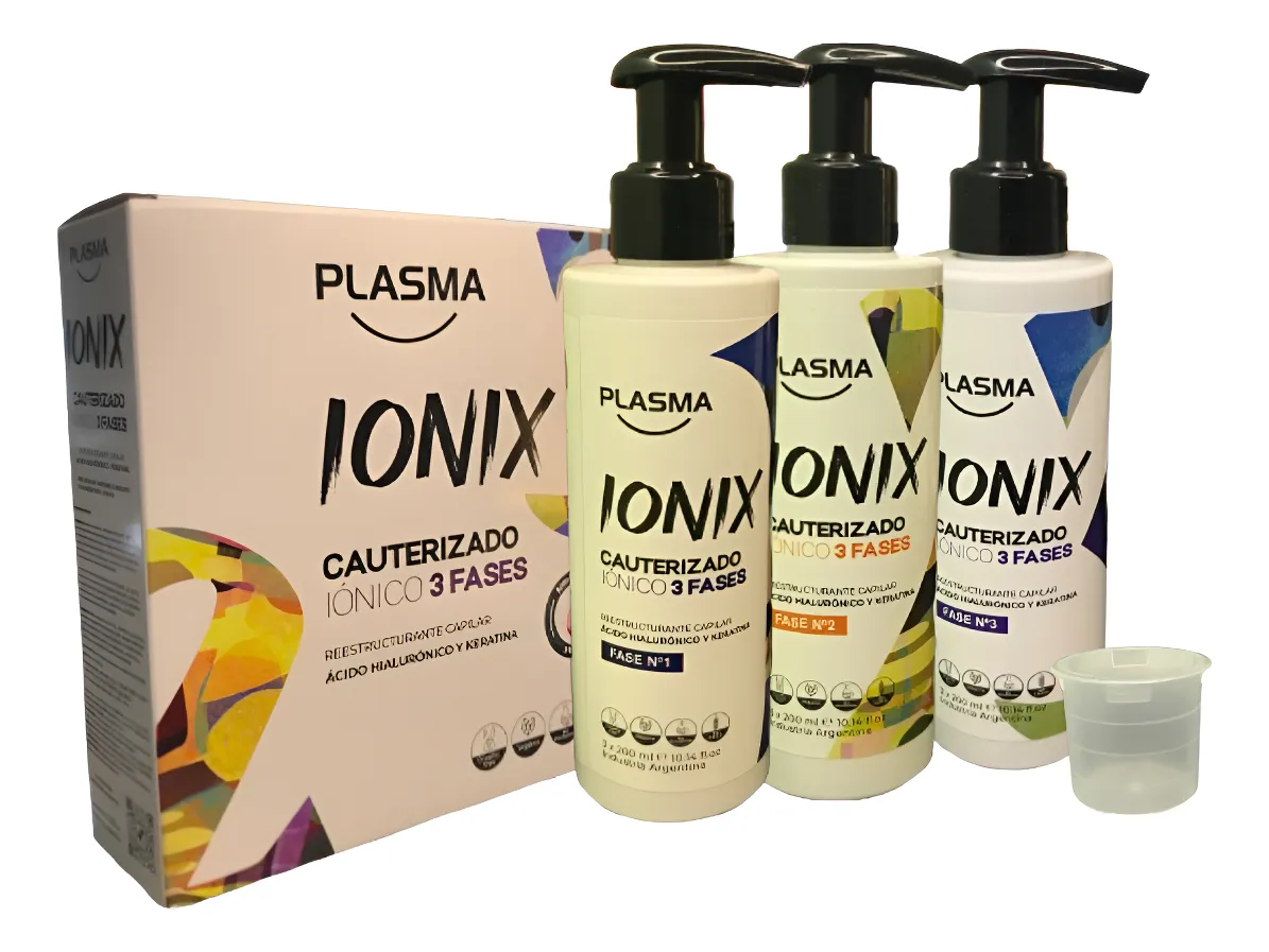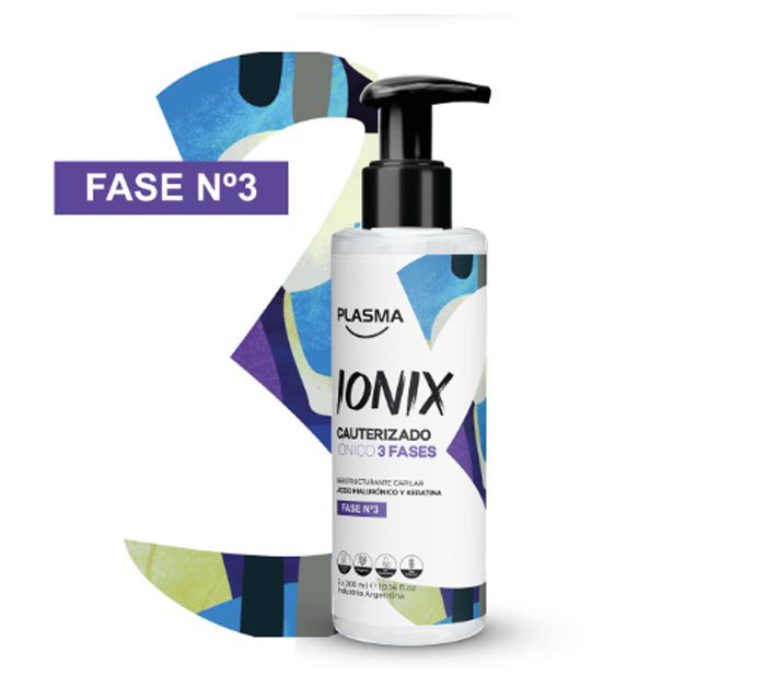 2° Lavar el cabello con Shampoo Plasma, secar el exceso de agua. Sobre el cabello húmedo aplicar Plasma Ionix en forma uniforme masajeando suavemente en las zonas de mayor daño. Dejar actúar durante 5 minutos. retirar con abundante agua tibia. Rinde para 10 usos o más.