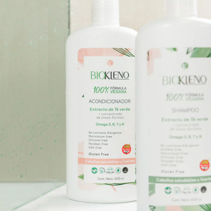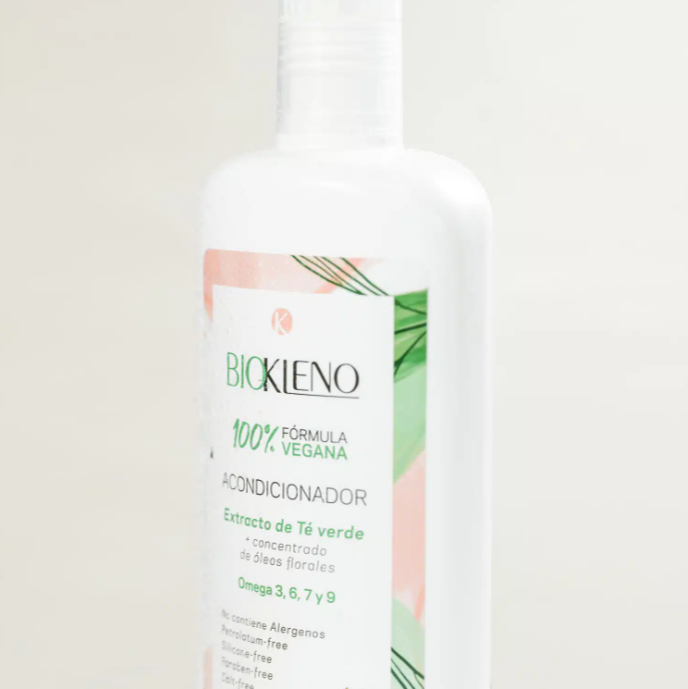 Acondicionador KLENO, por su fórmula súper nutritiva, otorga un crecimiento más fuerte, evitando el quiebre. Contiene Activos Naturales Concentrados de óleos ricos en Argán, Almendras, Oliva, Maíz y Girasol, que aportan Omega 3, 6, 7 y 9 y vitamina E, que le asegura un efecto reparador al cabello, y le aporta mucho brillo y suavidad, sellando las cutículas y devolviéndole los ácidos grasos esenciales responsables de la lubricidad y naturalidad. No contiene siliconas, ni sal, ni parabenos, ni aceites derivados del petróleo, ni alérgenos. 100% Vegano y Libre de T.A.C.C.