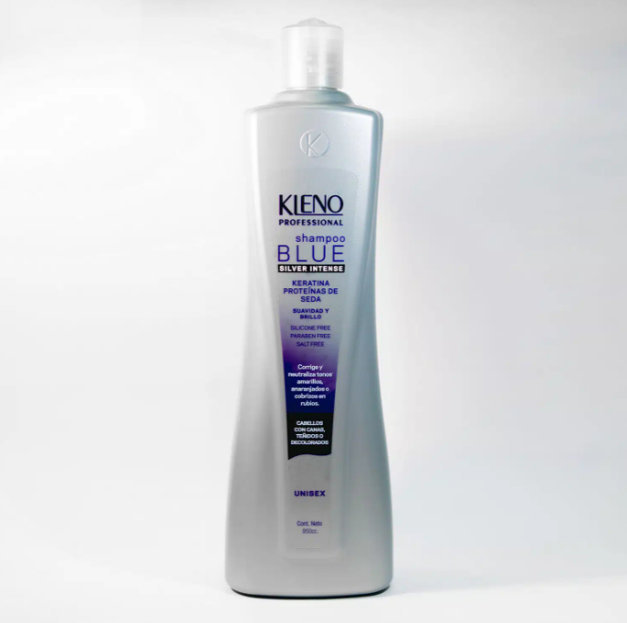 BLUE SHAMPOO KLENO está especialmente formulado para neutralizar y corregir los indeseables tonos amarillos, anaranjados o cobrizos no deseados que aparecen en los cabellos tratados con coloración o cabellos con canas, aportando sobre estos últimos un tono plata intenso