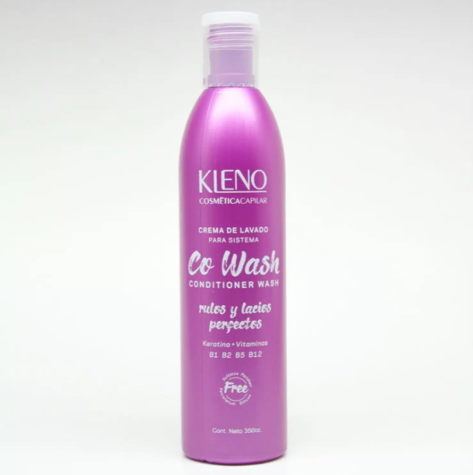 CO-WASH para rulos y lacios perfectos . Con Keratina + Vitaminas B1 B2 B5 B12. CONDITIONER-WASH KLENO es un novedoso producto creado para lavar tus cabellos con el Sistema Co-Wash, donde solo se utiliza acondicionador conteniendo un pequeño porcentaje de tensioactivos libres de Sulfatos, Parabenos, Siliconas y derivados del petróleo. Por su contenido en nutrientes y Vitaminas otorga a tus cabellos suavidad y fortalecimiento. Su formulación equilibrada en tensioactivos permite un lavado perfecto sin abrir demasiado la cutícula, conservando los aceites naturales que genera el cuero cabelludo, su hidratación y brillo natural. Como resultado tendremos Rulos Perfectos y Lacios Naturales.